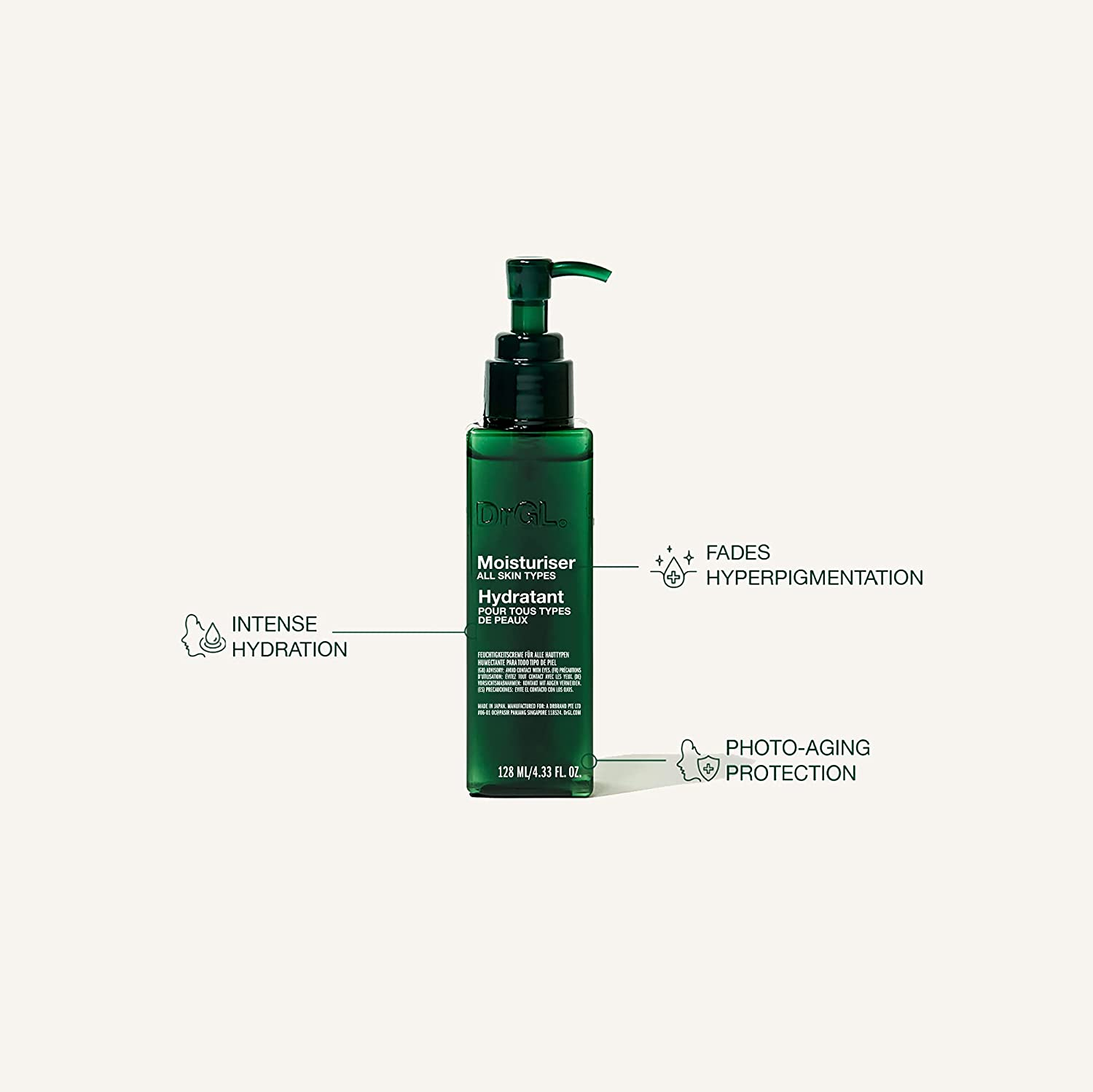 DrGL Moisturiser All Skin Types | Long Lasting Hydrating Moisturiser | Nourishing Care Sensitive Skin | Fast Absorbing Lotion | Ideal for Daily Use | 128ml